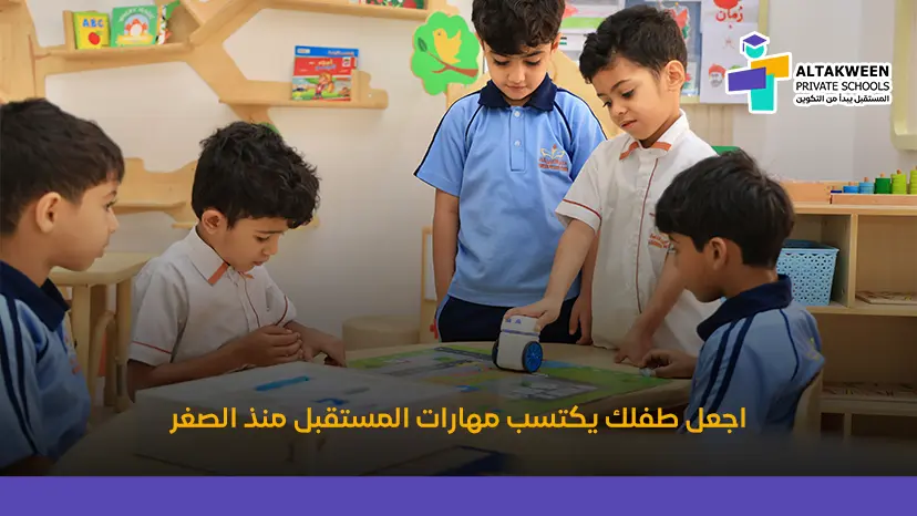 احجز مقعد طفلك الآن في مدارس التكوين واضمن له مكاناً في بيئة تعليمية تجمع بين المرح والتعلم.