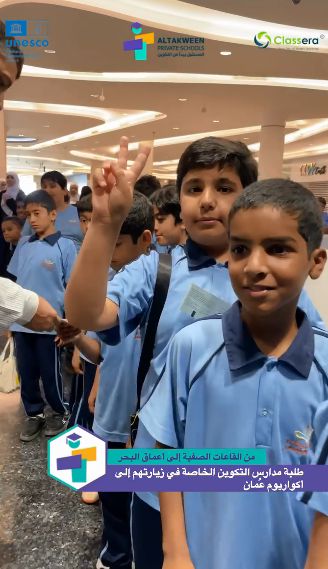 في إطار سعي مدارس التكوين الخاصة في بركاء إلى تعزيز التعلم من خلال التجارب الواقعية والأنشطة التعليمية التفاعلية ، نظمت المدرسة رحلة ميدانية مميزة إلى أكواريوم عُمان بمشاركة مجموعة من طلاب المراحل المختلفة ، وذلك ضمن برنامجها المستمر لدعم التعلم النشط وتوسيع مدارك الطلبة .