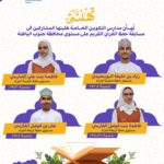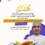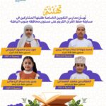 تفخر مدارس التكوين الخاصة بالطلبة المشاركين في مسابقة حفظ القرآن الكريم على مستوى محافظة جنوب الباطنة، وتوجه لهم أحر التهاني والتشجيع على هذه الإنجازات الرائعة.